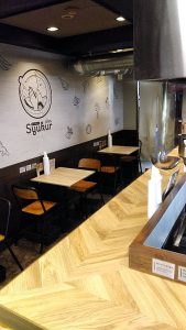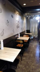 店内には壁にはカレーの材料たちのイラストがかわいらしくプリントされキレイにされています♪