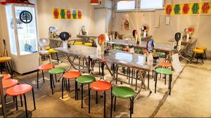 可動性の高い椅子とテーブルは大人数の立食パーティースペースとしてもすぐに対応可能!アクティビティによってあらゆる形に変化できるので、貸し切りなどもスムーズ!