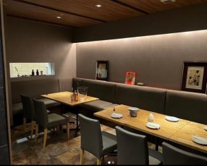テーブル席は広々としたソファーと大きめの椅子でゆったりと座れます。