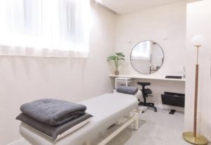 白を基調とした施術室は、広々とした清潔な室内、プライバシーも守れます。