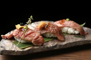 神戸牛肉寿司3貫盛赤身、中とろサーロイン