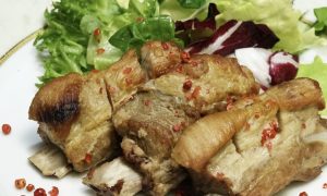 骨付き肉を香ばしく焼き上げたボリューム満点のスペアリブ。お酒にもよく合います。