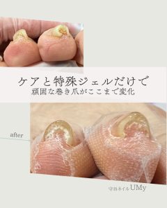 巻き爪ケア専用ジェルを使った痛くない施術を行っています。