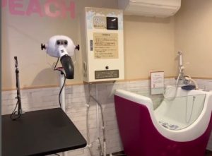 お部屋にはドッグバス、トリミング台、スタンドドライヤーが完備され、さらに、備品もいっぱい!手ぶらで気軽にシャンプーできます!!