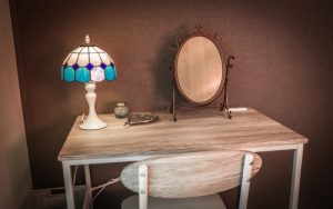 カウンセリングシートをご記入頂く場所として、また施術後にはドレッサーとしてご利用頂いたり、ハーブティーを飲んでお寛ぎ頂いております