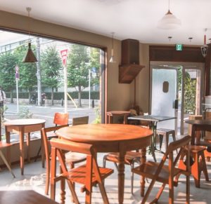 一面ガラス張り越しに街の景色がよく見える素敵な店内