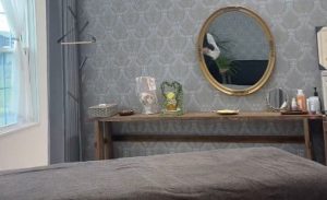 緑豊かなキャンプ場が併設された、トレーラーハウス内の自然を感じられるヒーリングサロン。