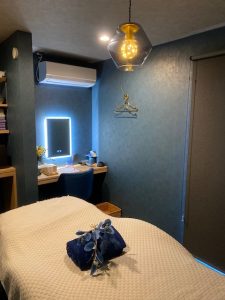 深層心理で深く落ち着く効果のあるといわれている深青を基調とした店内で、深いリラクゼーションとお悩みのケアを。