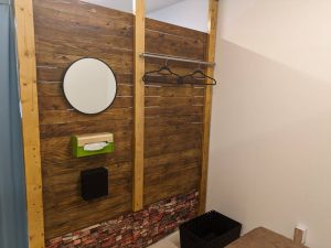 当院の施術スペースには施術後患者様が身だしなみを整えていただく為の鏡やティッシュ・ダストボックスを1つの場所に全てまとめています。