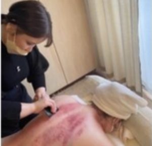 カップを皮膚に密着させ、陰圧を利用して、ドロドロとした血の滞りを吸引し、筋肉に刺激を与え血液循環の改善を図る治療法。