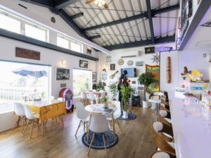 アメリカンな雰囲気の店内は、錨や舵をモチーフにした小物が随所に散りばめられ、西海岸スタイルのカジュアルな空間。